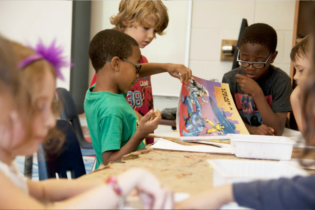 Perpustakaan dengan koleksi digital dan ruang belajar.